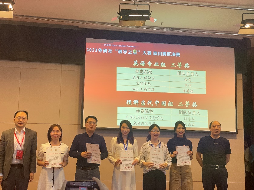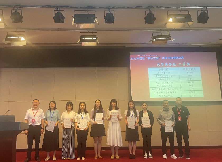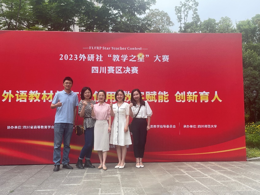 5月27日,2023年外研社“教学之星”大赛四川省决赛在四川师范大学举行,此次省级决赛一共有34支队伍参加,英语专业组、理解当代中国组18组,大学英语组16组。经过巅峰“论剑”,我校taptap点点足彩的两支教师团队,陈雪婷老师和李清老师(团队成员:周丹强玉、邹佳静、杨睿)凭借扎实的授课功底、出色的课程设计荣获本次比赛理解当代中国组二等奖,钟璇老师、王韵老师(团队成员:庄馨)也获得了大学英语组三等奖的优异成绩。