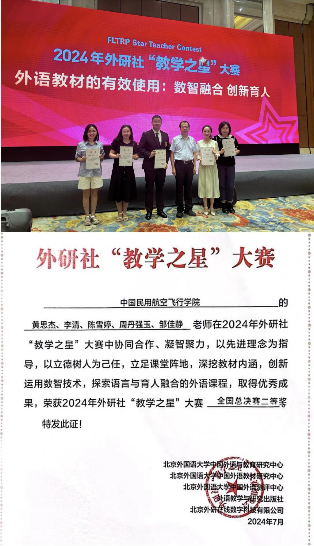 7月28日,2024年外研社“教学之星”暑期大学英语组教学比赛在安徽合肥圆满落幕,我校taptap点点足彩教师黄思杰、李清(团队成员陈雪婷、周丹强玉、邹佳静)凭借出彩的课程设计、扎实的语言功底荣获2024年外研社“教学之星”全国总决赛二等奖的优异成绩,为本次四川省大学英语组晋级高校所获得的最佳名次。