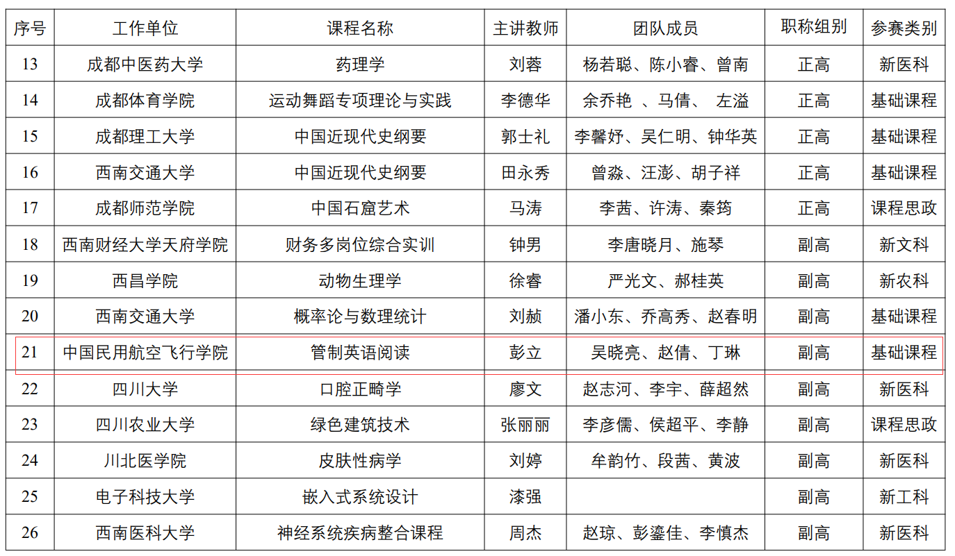 近日,四川省教育厅公布了《第三届四川省普通本科高校教师教学创新大赛获奖名单的通知》,taptap点点足彩彭立副教授教学团队领衔的管制英语阅读课程荣获副高组二等奖!教学团队还包括吴晓亮老师,赵倩老师以及丁琳老师。