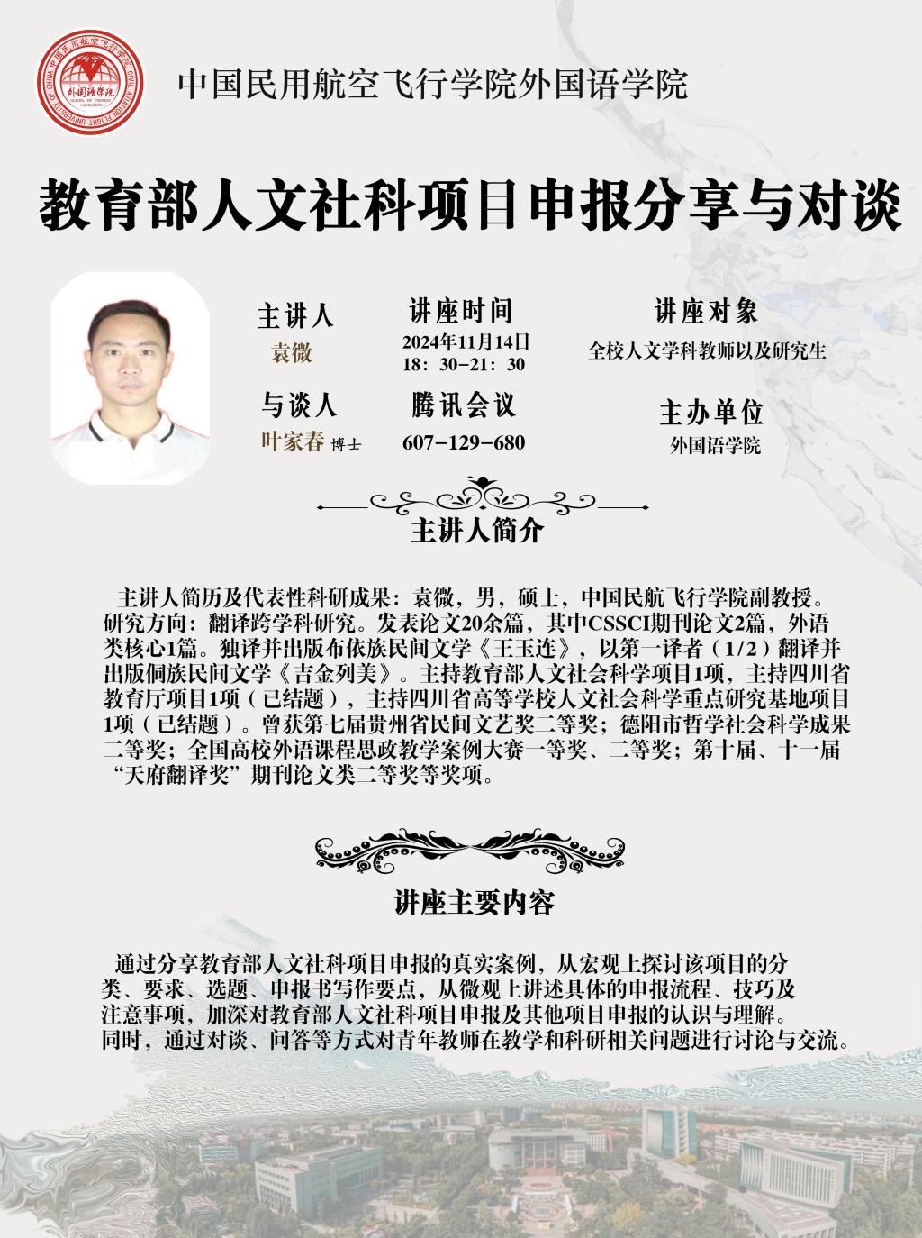 上一条:讲座通知:加快应用型外语人才培养 投身新时代国际传播实践