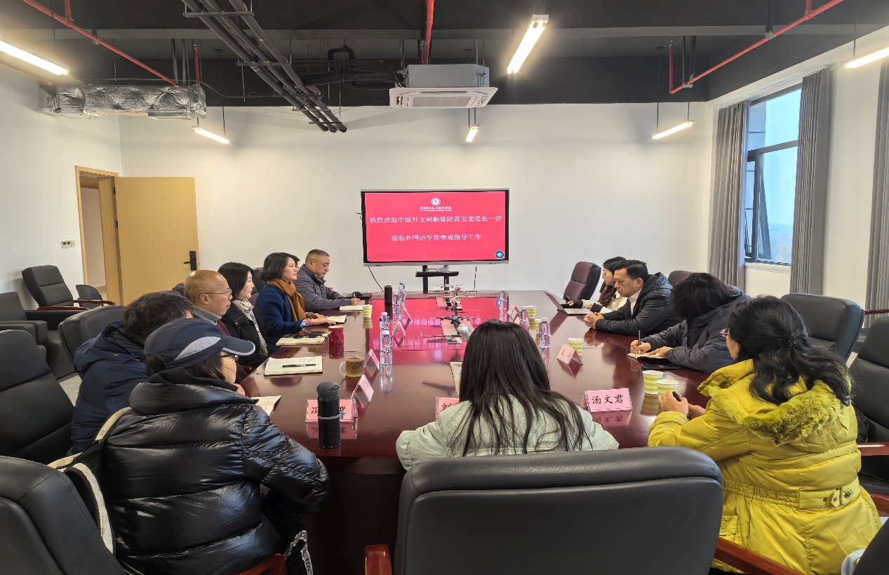 12月12日上午,中国翻译协会副会长、中国外文局翻译院院长黄玉龙一行前往taptap点点足彩调研。学院党委书记张铭、院长郑丽、副书记段震、副院长申卫华、各室(系)主任及教师代表参加调研会。