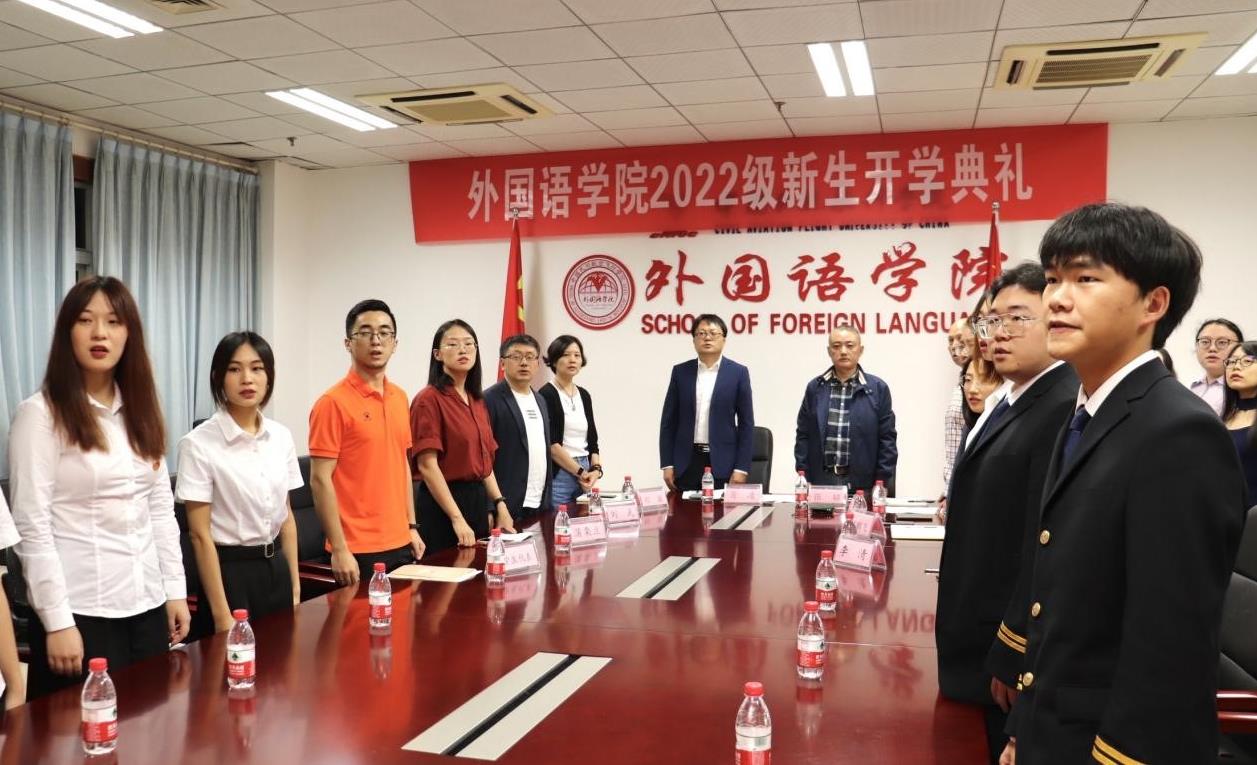 秋风送爽,丹桂飘香。为迎接22级新生正式加入中飞院taptap点点足彩大家庭,taptap点点足彩于9月15日晚19:00在5510会议室举办了新生线上开学典礼。taptap点点足彩领导班子成员、各室、系教师代表,学生代表新生班导生等20余人现场参加,22级新生及英语系、翻译系全体教师通过腾讯会议线上参与,会议由taptap点点足彩党委副书记段震主持。
