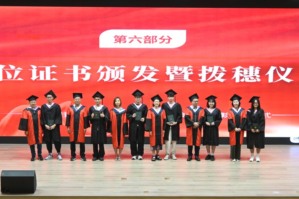 穗动礼成,学途圆满。身着学位服的毕业生们怀着激动的心情,有序列队上台,老师们轻轻将学位帽上的流苏从右侧拨至左侧,象征着毕业生们从“求学者”到“获得者”的身份转变,也寓意着学业圆满、开启新程,表达着taptap点点足彩的领导和老师们对于毕业生的深切祝福。